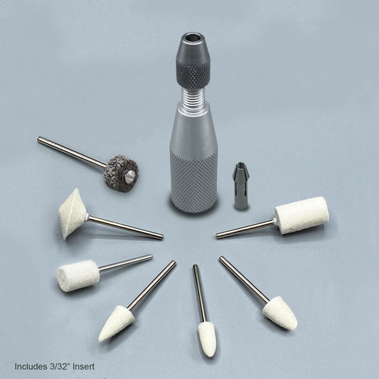 This is the full list of items available in the JOOLTOOL online store. Browse for your favorite kits, add-on accessories and abrasives. It's the go-to for all your jewelry finishing, metalworking, woodworking, automotive projects and more!