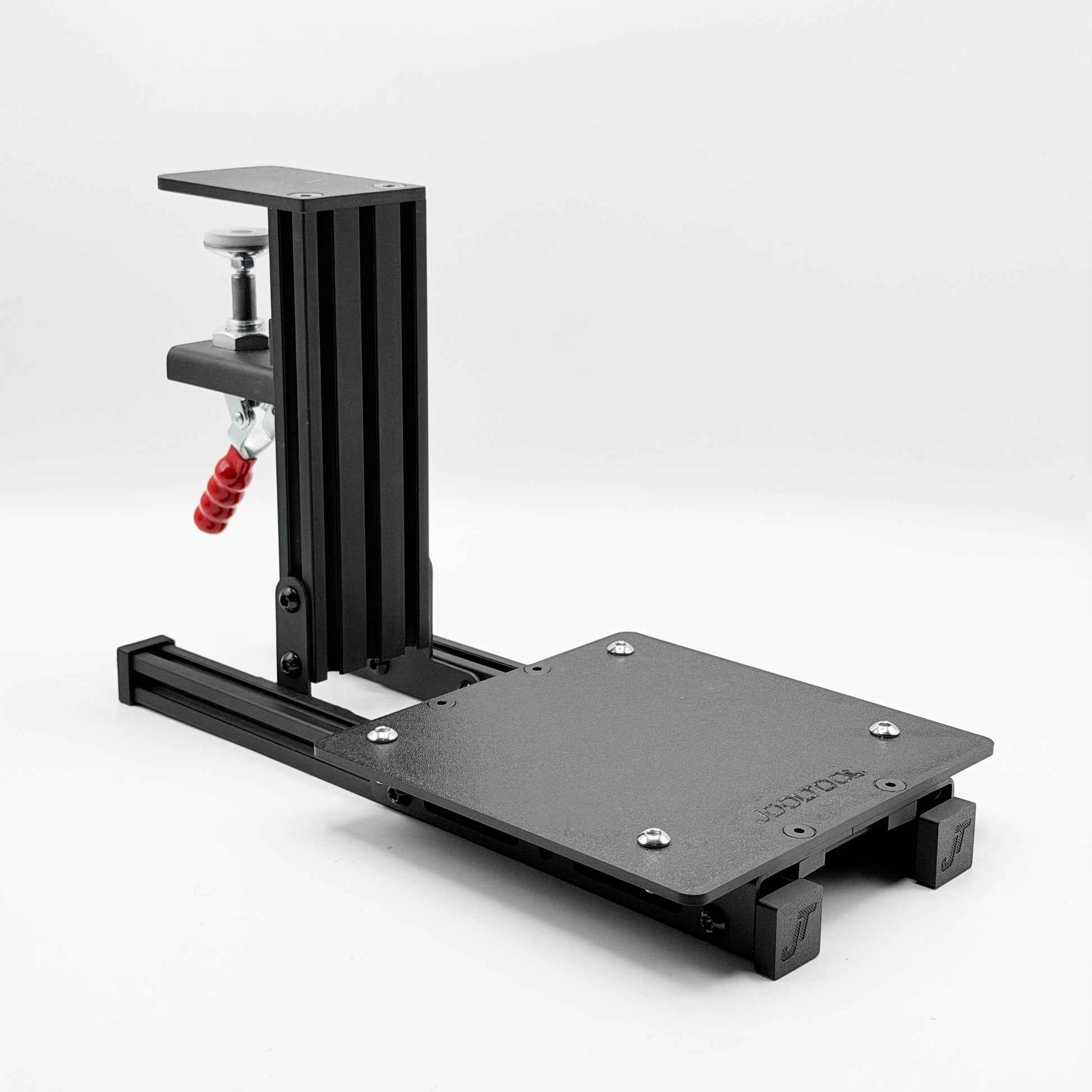 Our new JOOL BENCH is a versatile attachment that holds your JOOLTOOL machine and replaces the need for a workbench, hence the tongue-in-cheek name! It clamps onto nearly any table, any material and almost any thickness. It easily adjusts to a comfortable, ergonomic height that is custom for you. It's like a portable JEWELER'S BENCH without needing all that extra furniture. The unique point of contact works great on round tables too. Gives you that "countertop height" overhead view and feel, all while seated with your feet firmly planted.