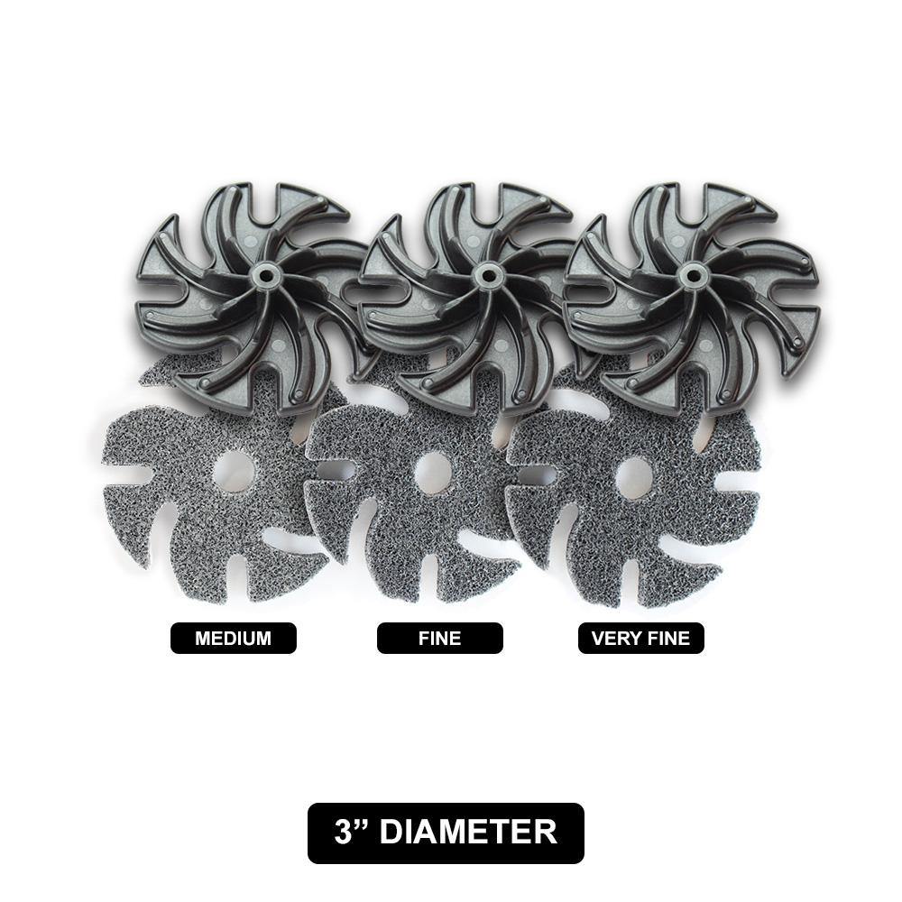 Also known as the 3M™ Scotch-Brite EXL Unitized abrasives, these burnish (“massage” or “blend”) your metal and get rid of scratches & surface imperfections. When used in succession from coarse to very fine, these surface conditioning discs leave an amazing brushed, satin or pre-polished finish. They are highly recommended for all your metalworking needs*.